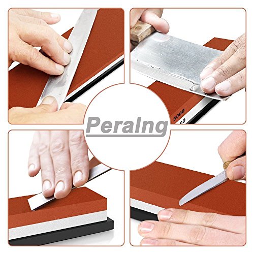 Peralng包丁研ぎ石 両面砥石(3000/8000)庖丁とぎ角度固定ホルダー付き 台座二つ付き (オレンジ3000/8000)