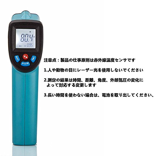 - 摂氏(℃)と華氏(゜F)の切替えが可能です。環境温度を自動で感応できます、IRで反応時間は0.5秒だけですすぐに温度を読み出すことはできて、時間がかかりません。