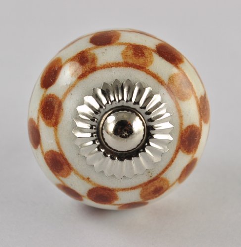 This exquisite ceramic door knob is hand made in Rajasthan;india by skilled artisans. The blue pottery of india is famous throughout the world for its quirky cheerful designs. The wide variety allows you to accessorize to your hearts content. The knobs are 1.5 inch in diameter and 1.5 inch in depth . The brass hardware required to install comes standard with each knob. Installation is easy! Just drill an 1/8 hole in the cabinet door and tighten the nut with a spanner. Disclaimer: Our Products are handmade to order for you. Although our artisans;The slight differences from piece will always be there and add to the charm of handmade products. Buy with confidence: We have a 14 days 100% money back guarantee Disclaimer : All our products are exquisitely handmade;one piece at a time;using natural made products. It is therefore quite difficult if not impossible to make identical items. Even though we have the most attentive artisans who are the Masters of their respective crafts