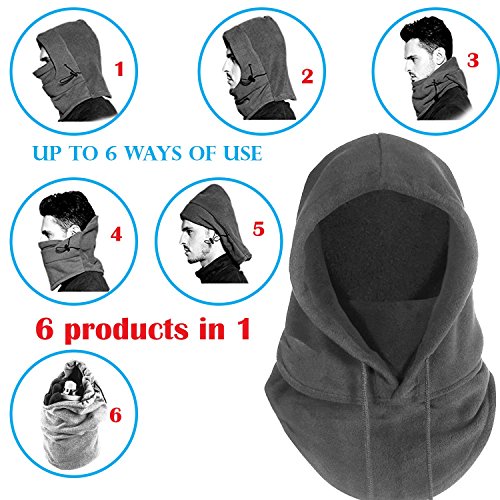 Multipurpose 6 in 1フリースパーカーもTurns Into Balaclava、面マスク、ビーニーキャップ、スカーフやバッグ – OneサイズFitsすべてWinter Wear That Can Be Worn 6の異なる方法でforメンズレディースby Perfect Lifeアイデア ブラック