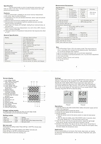 Multi-functions for air flow measurement m/s, km/h, ft/min, MPH, Knots & build in Volume CFM/CMM