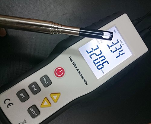 - Item includes: Thermal Anemometer, AC Power adapter, 40" Telescopic hotwire probe (9V DC battery not included)