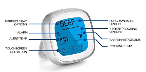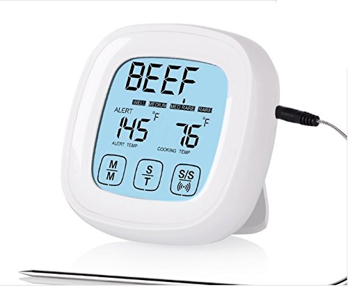 Perfect-Prime KW1022 Touch Panel Control /Alert BBQ/Kitchen/Oven Grill Thermometer Stainless Steel Probe for Meat Cooking