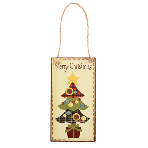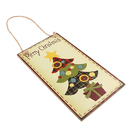 Perfk 木製 プラーク ボード クリスマス 壁 ハンギング 可愛い 木板 全4デザイン - クリスマスツリー