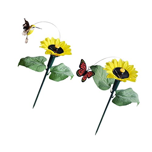 Perfk 人工蝶 鳥の装飾 ソーラー 羽ばたき ステーク 2個 フラワー アウトドア ガーデニング 小道具