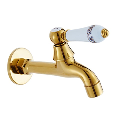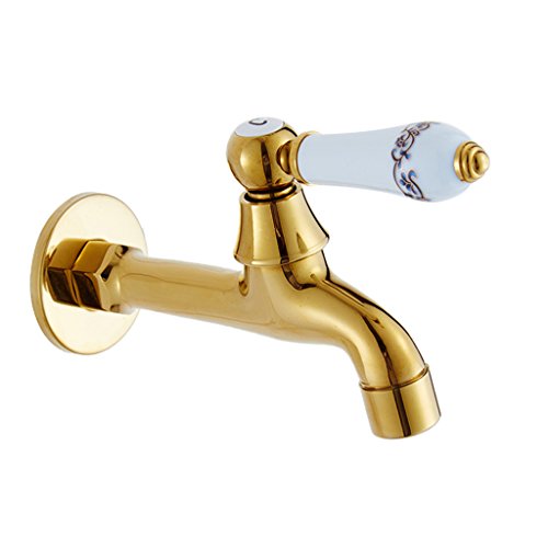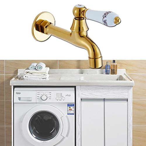 Perfk ウォールマウント 洗面器タップ 洗濯機タップ キッチンシンクタップ ゴールド 実用 エレガント 全3種 - ゴールド#3