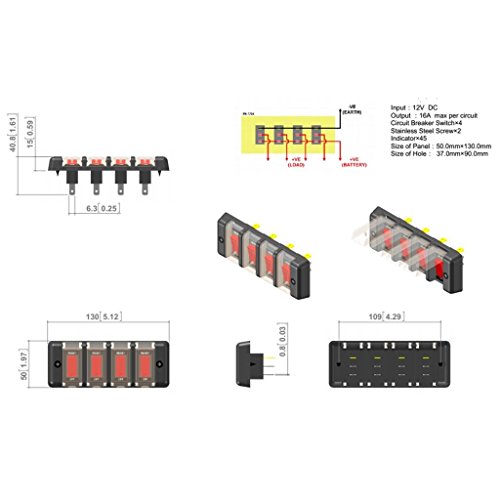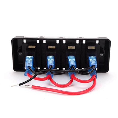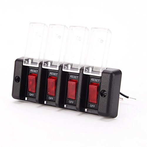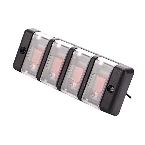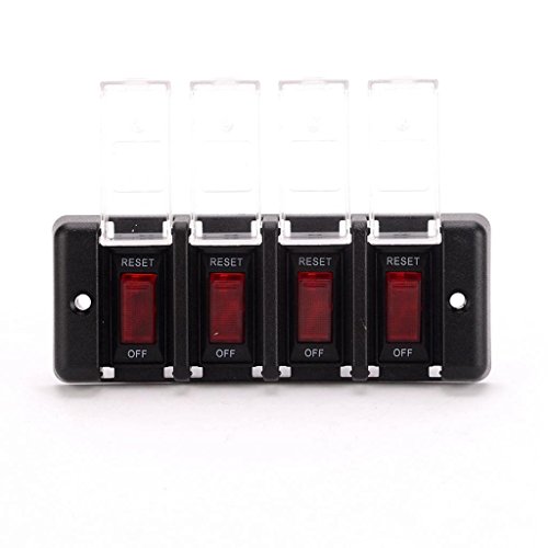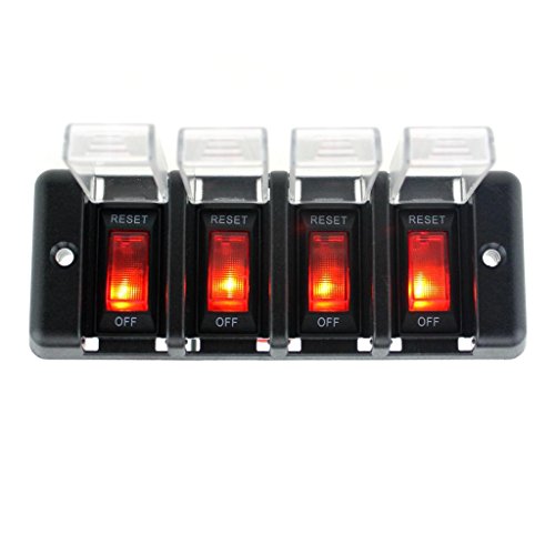 Perfk 12V 4ギャング 車のパネルスイッチ 赤ボタン 防水 サーキットブレーカ カバー付き