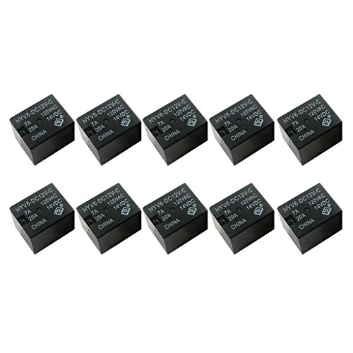 Perfk 10点セット 小型 パワーリレー 自動車リレー 12V 5ピン 汎用 軽量 ブラック