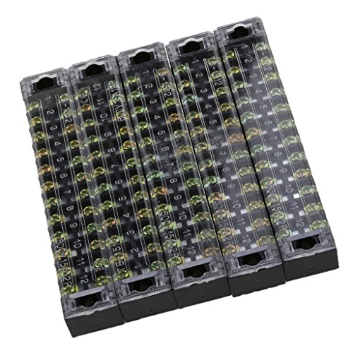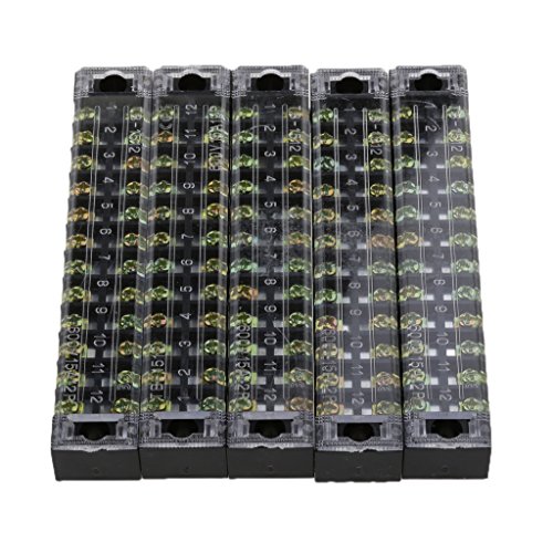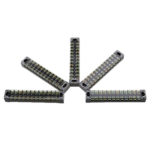 Perfk 600V 15A 12P デュアル行 カバー バリア スクリュー ターミナルブロック ストリップ 5個入り
