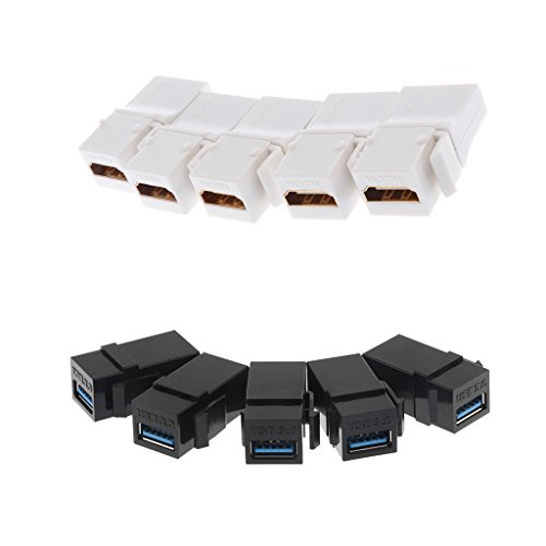 Perfk 5x HDMI キーストーン ジャック 5xUSB 3.0 キーストーン ジャック メス→メス カプラー ホワイト+ブラック