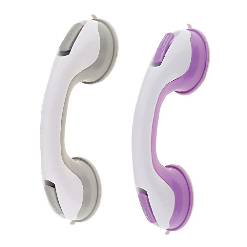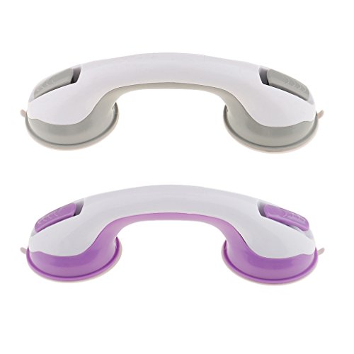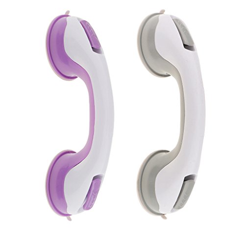 Perfk グラブバー 手すり 吸盤式 ハンドル 2点セット 安全サポート パープル&グレー バスルーム シャワー