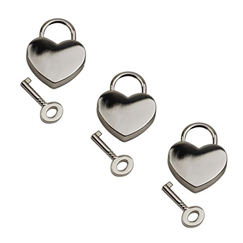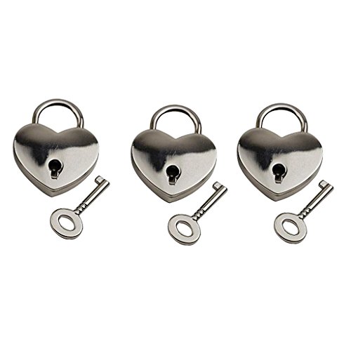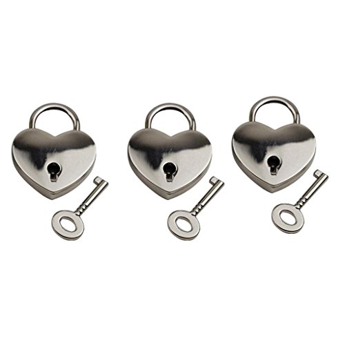 Perfk 合金製 ミニ南京錠 コンビネーションロック 荷物スーツケース ハート アンティーク キー付き 3個セット