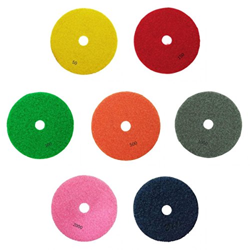 Perfk 全2サイズ ダイヤモンド 高性能 ドライ/ウェット 研磨パッド 花崗岩 大理石 研削と研磨に使用 7個 - 直径100mm