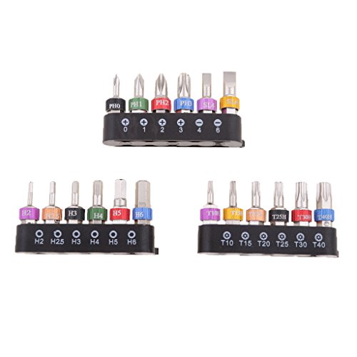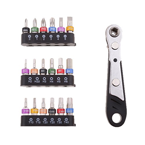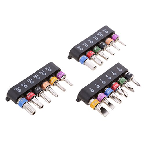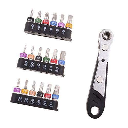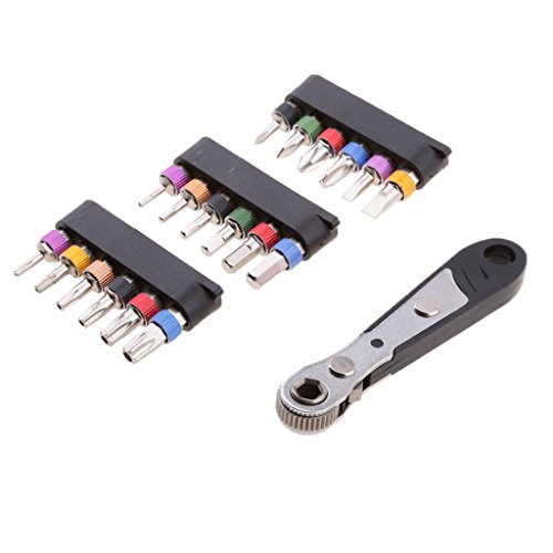 Perfk 19点セット ミニラチェット レンチ スクリュー ドライバービット 六角シャンク ユニバーサル 修復ツール 全2色 - ブラック