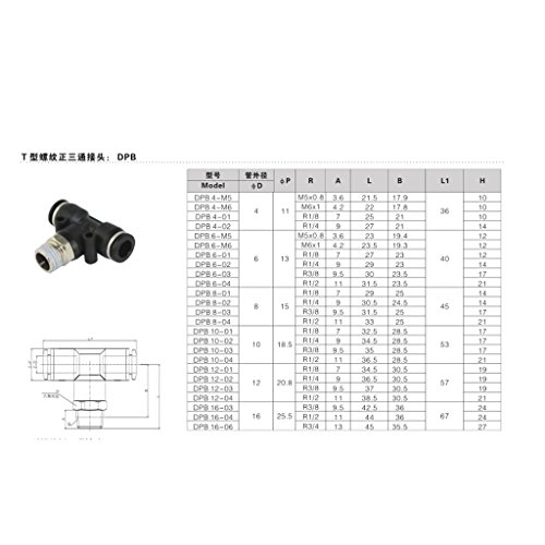 Perfk エアーホースチューブ継手 ホースチューブ エルボープッシュ 空気圧継手 パーツ 交換パーツ 5点セット 全5サイズ選ぶ - DPB6-M5