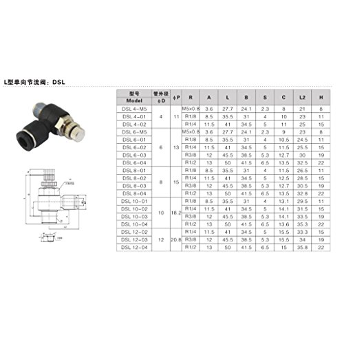 Perfk エアーホースチューブ継手 ホースチューブ エルボープッシュ 空気圧継手 パーツ 交換パーツ 5点セット 全13サイズ選ぶ - DSL-L6-02