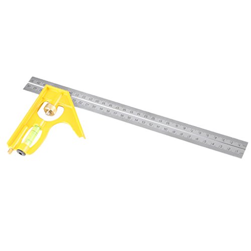 Perfk 12インチ 角度ルーラー 内外角度測定ツール 角度定規 0-180度 木工用 全2色 スケール付き - 黄