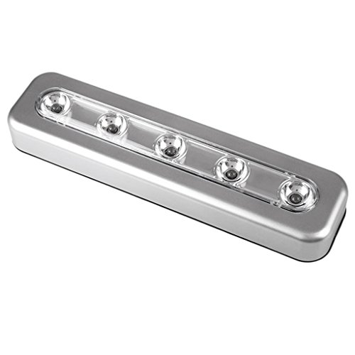 Perfk 5LED ナイトライト 壁灯 タッチ御制 コード不要 タップ/プッシュ式 スイッチ 夜間照明 3色選べる - シルバー