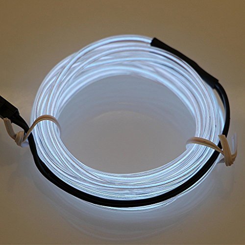 Perfk 全8色選べる プラスチック 金属製 カーインテリアライト ネオンコールドライト ELライトストリップ 3M - ホワイト
