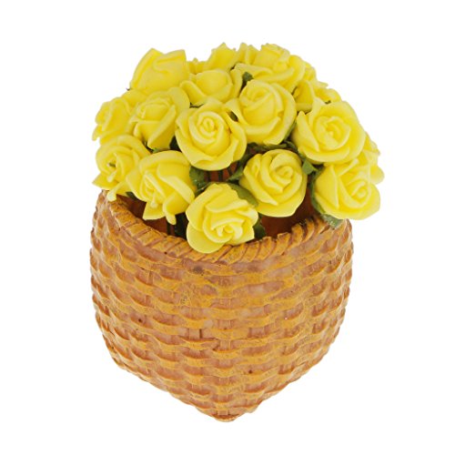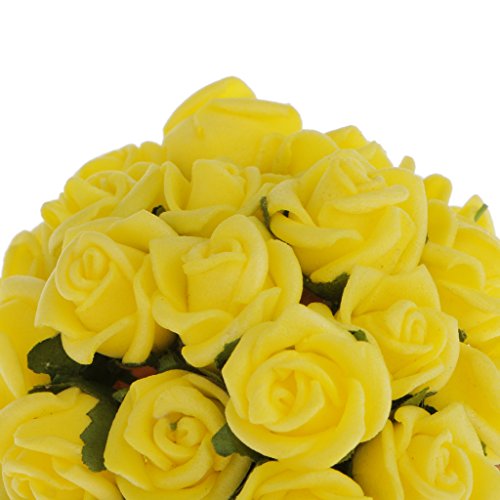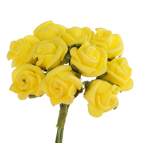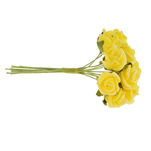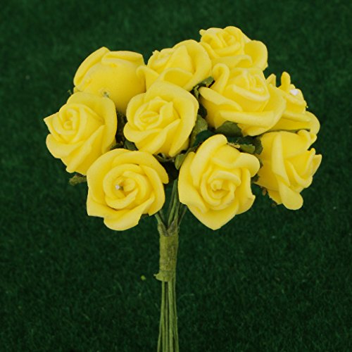 Perfk 結婚式 花嫁 装飾 ミニ 人工バラ 花 造花 ブーケ ホーム 全10色選べる - イエロー