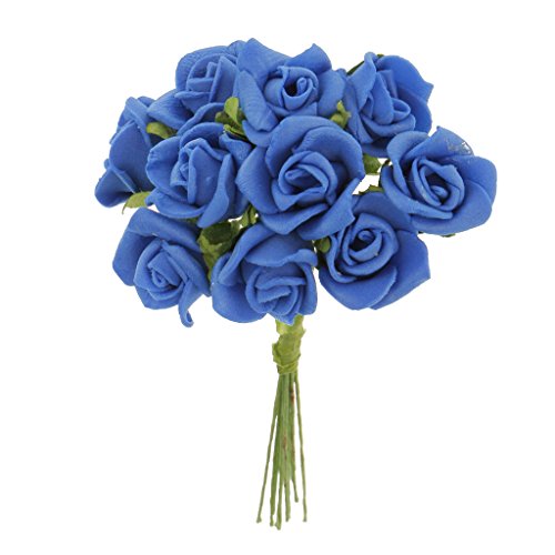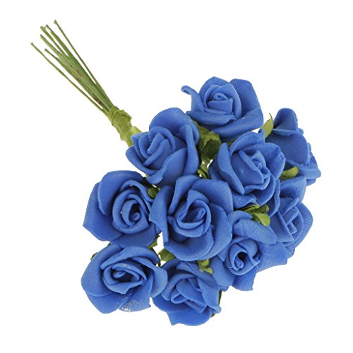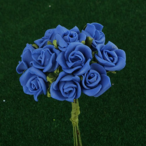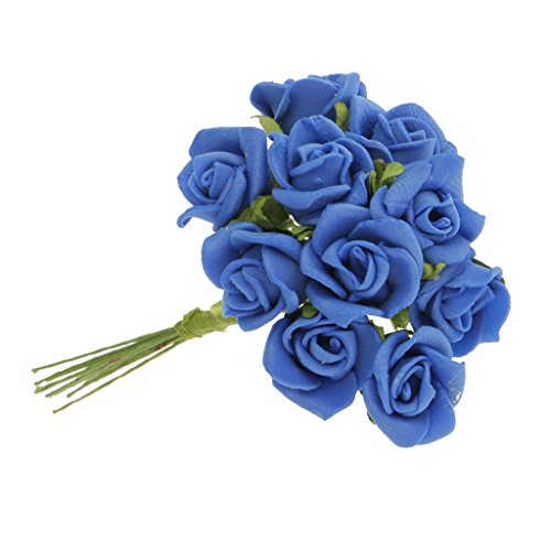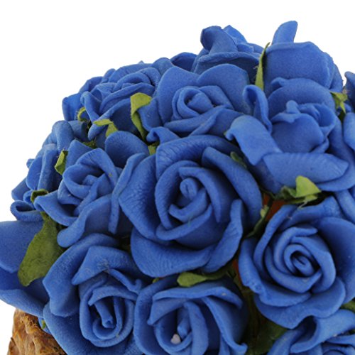 Perfk 結婚式 花嫁 装飾 ミニ 人工バラ 花 造花 ブーケ ホーム 全10色選べる - ダークブルー