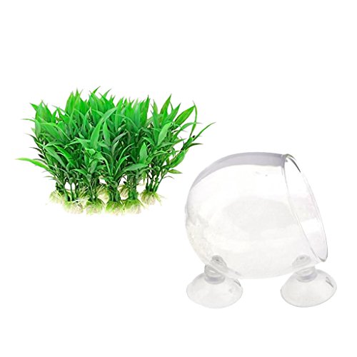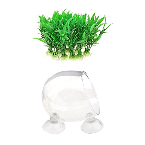 Perfk 2個 高品質 壁掛け 花瓶 ガラスカップ ポット と 人工水生植物 シミュレーション 水草 水族館 水槽 造園