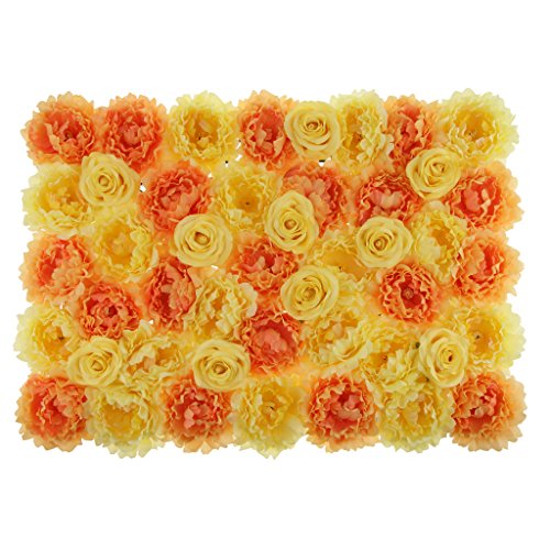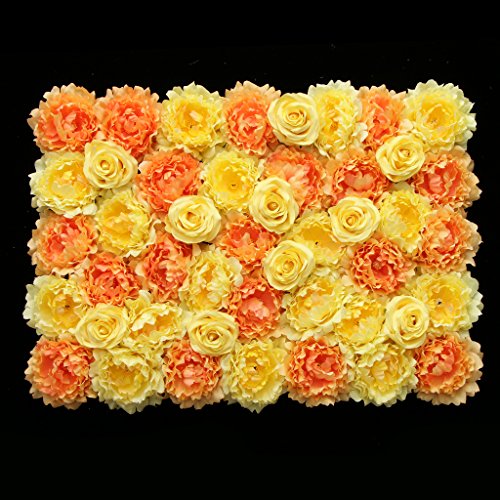 Perfk フラワー 人工花の壁 壁掛け 造花 シルク インテリア 飾り 写真小道具 全7タイプ選べる - 黄, 68 x 50 x 6cm