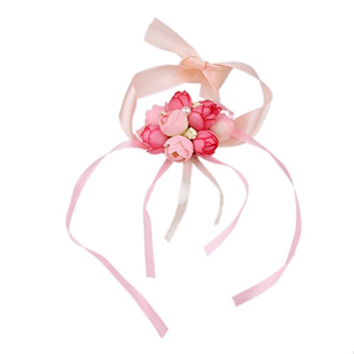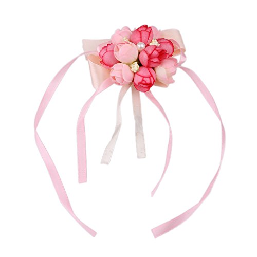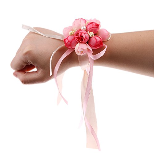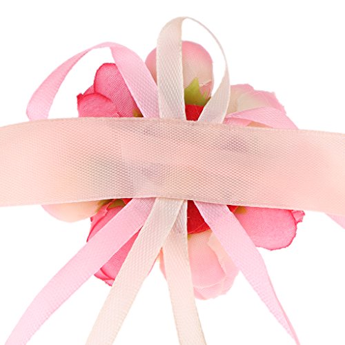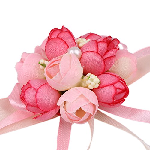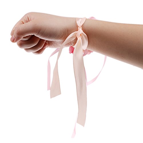 Perfk 2個 結婚式 ウエディング パーティー 花嫁介添人 ピンク ローズ 造花 手首 コサージュ ブレスレット