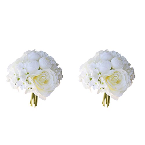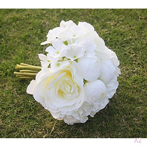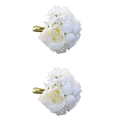 Perfk 2束 入り ホワイト ウェディング ブーケ バラ 造花 花束 花嫁 豪華 フラワーガール ローズ