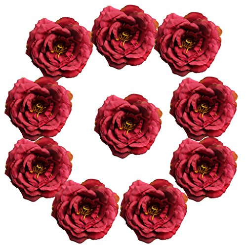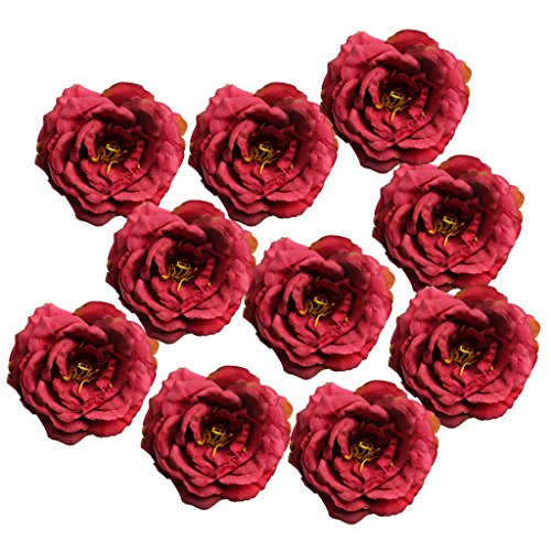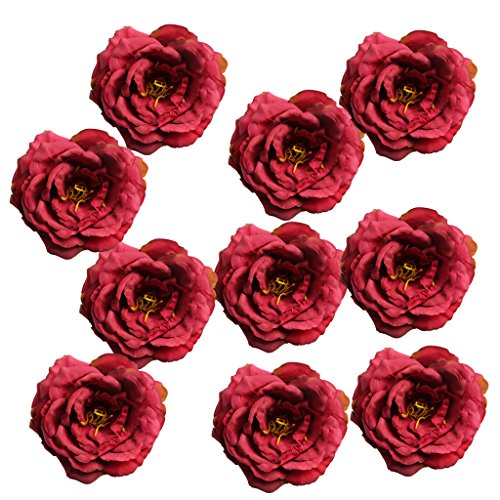 Perfk 人工牡丹 シルクフラワー 造花 ホーム装飾 結婚式 DIYアクセサリー 花飾り 10個 全11色 - 赤