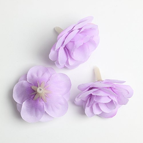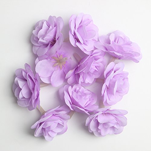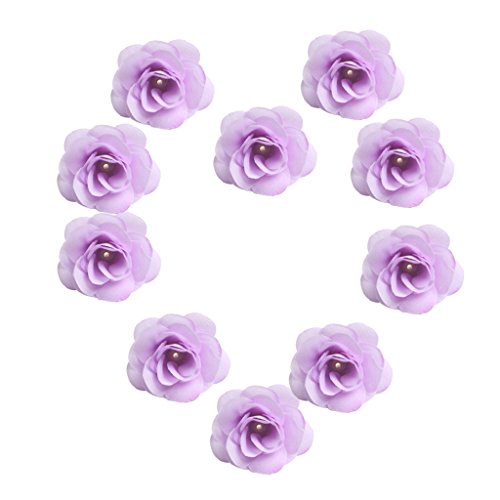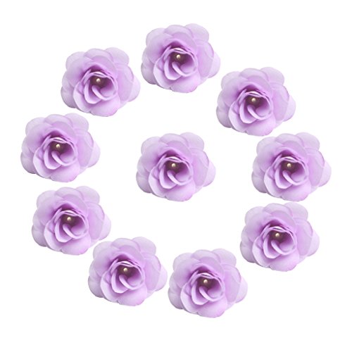 Perfk 10個全13色 結婚式 人工造花 花部分のみ パーティー 装飾用 帽子/服装/カバン アクセサリー シルクバラ 4cm - パープル