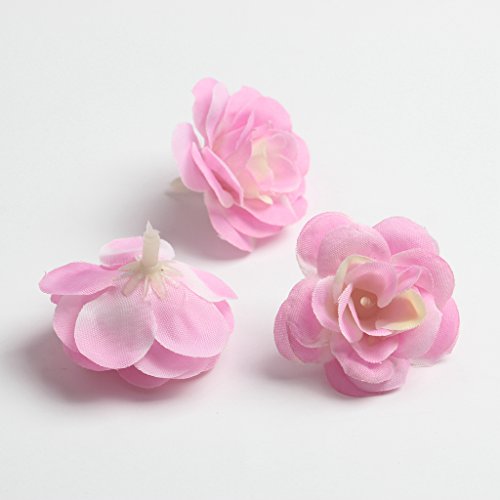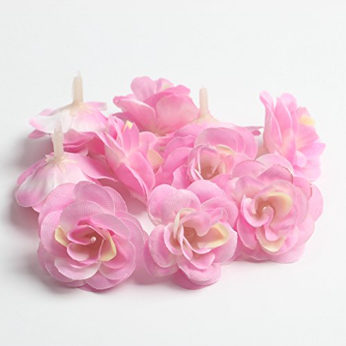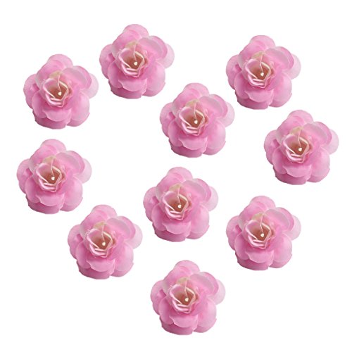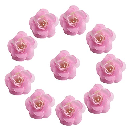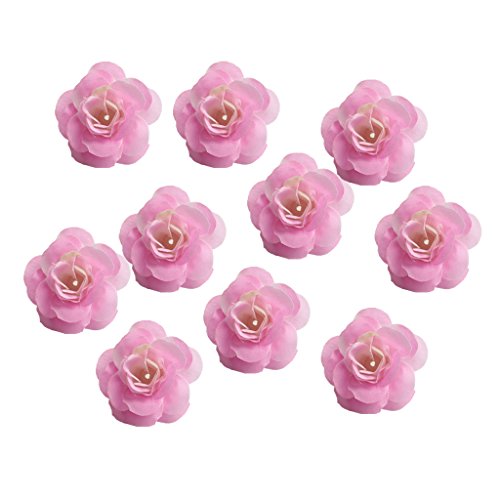 Perfk 10個全13色 結婚式 人工造花 花部分のみ パーティー 装飾用 帽子/服装/カバン アクセサリー シルクバラ 4cm - ピンク