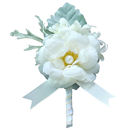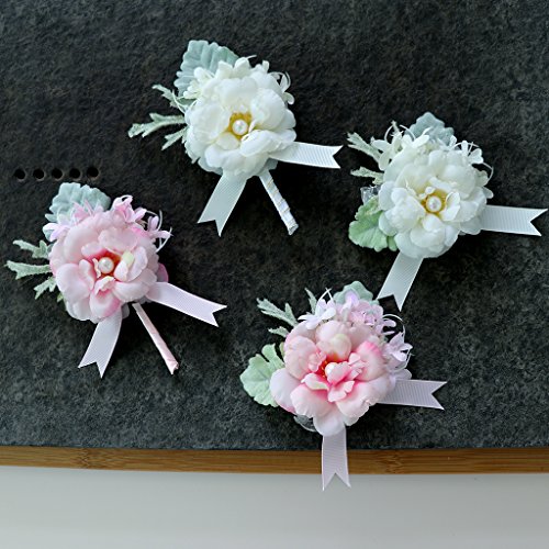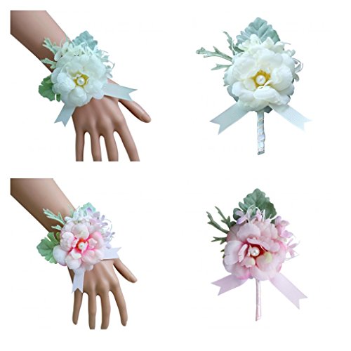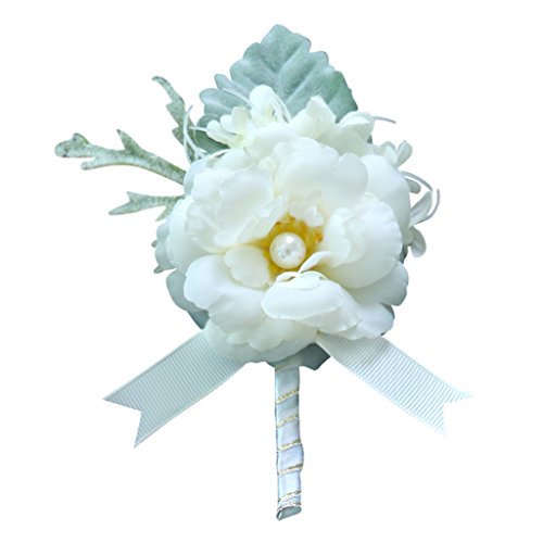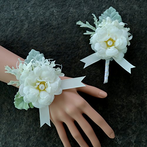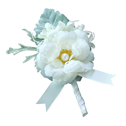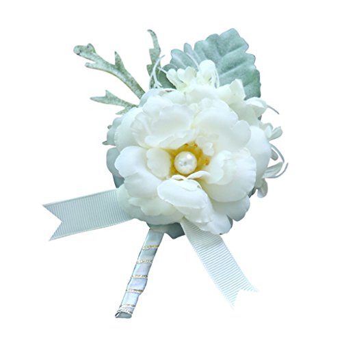 Perfk 手首 コサージュ リストバンド ブローチ 造花 卒業 入学 発表会 プロム パーティー 開会式 装飾品 全4色 - ホワイト1