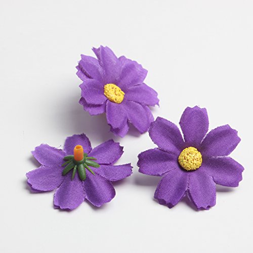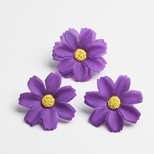 Perfk 約50個 服装/帽子/かばん飾り 結婚式 フラワー シルクデイジー ギフト包装 シルク作成 人工造花 全12色 - ダークパープル