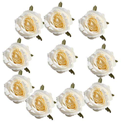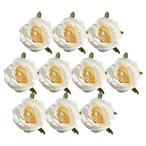 Perfk 10個 薔薇 ヨーロッパ風 ホーム飾り ヘッドバンド 花部分のみ ヴィンテージ 手首花作り シルクバラ 造花 - クリーム
