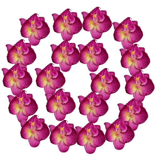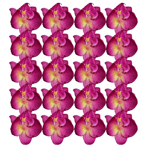 Perfk 約20個 6cm 人工造花 フラワーヘッド 装飾品 花嫁 手首の花作り シルクオーキッド 結婚式 全4色選べ - 紫+赤