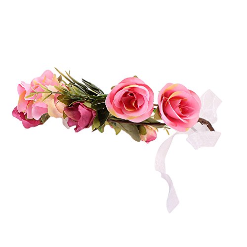 Perfk 可愛い ウェディング パーティー フェスティバル 花輪 ヘアバンド フラワー ヘッドバンド ベビー ガール 全4色 - ピンク