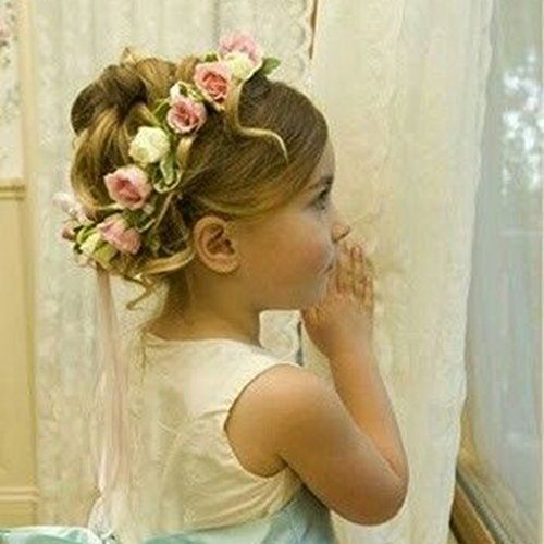- ボホスタイルの子供の女の子は花のヘッドバンドの髪の花輪をバラ