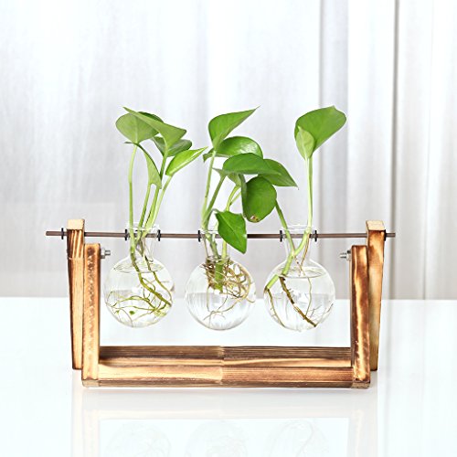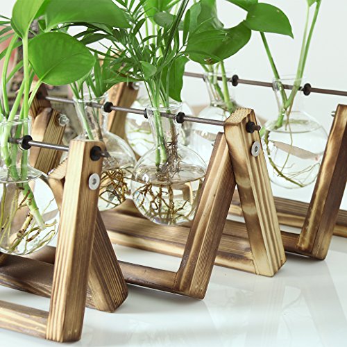 Perfk 木製 トレイ付き 水耕栽培 花瓶 テラリウム容器 卓上花瓶 3タイプ選べる - 3ビーカー
