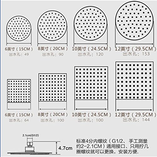 Perfk 高品質 シャワーヘッド 高圧 シャワー スプリンクラーヘッド 耐錆性 耐久性 多種選べる - 30cm長方形