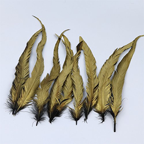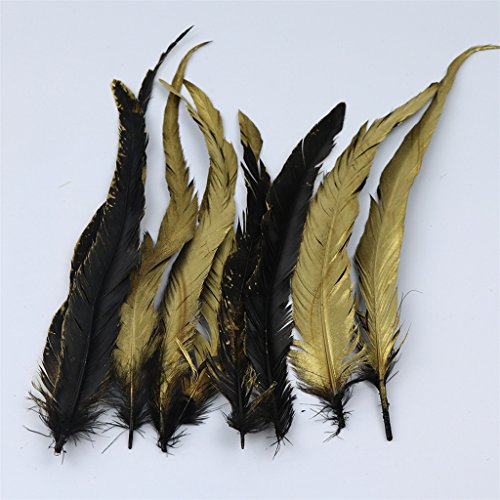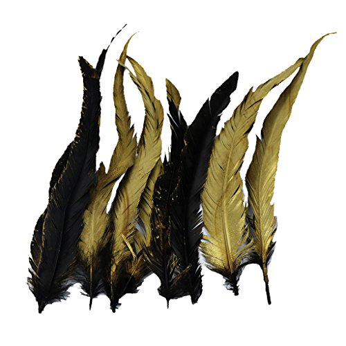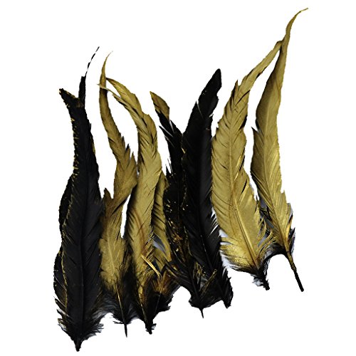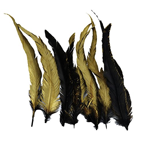 Perfk 人造羽毛 DIY工芸品 ブラックゴールド アクセサリー お飾り 髪デザイン 25~30cm10枚