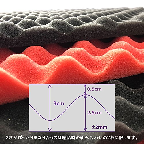 (ピコリコ) PicoRico 吸音 防音 ウレタンフォーム 波型 スポンジ 黒&赤 50cm × 50cm ×2.5cm 12枚 セット
