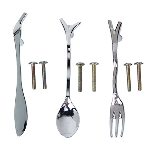 Pixnor 1pcsフォーク+ 1pcsナイフ+ 1pcsスプーン形状ハンドルキッチンキャビネットクローゼット引き出しプルノブ76 mm