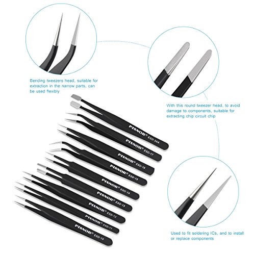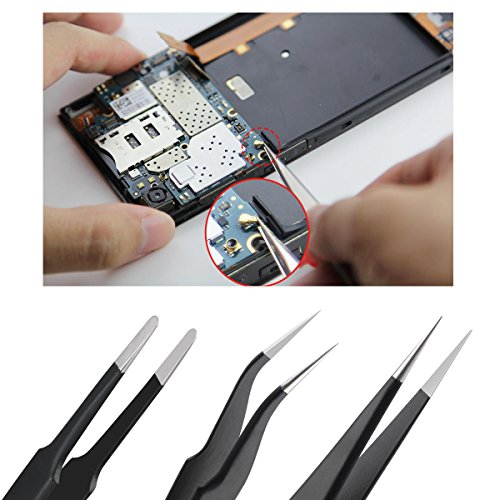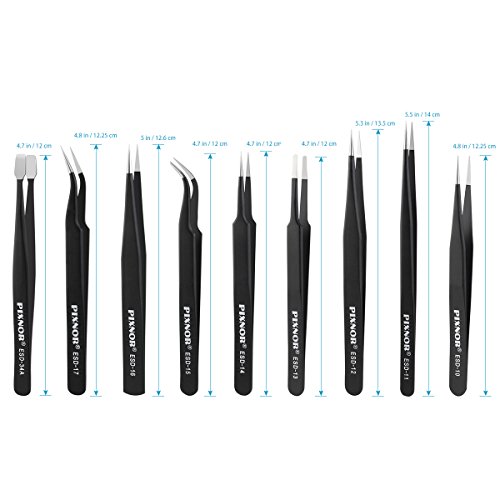 Pixnorピンセット精密静電気防止ESDのステンレス鋼ピンセット電子機器、jewelry-making、Laboratory Work、趣味 ブラック PIXNOR