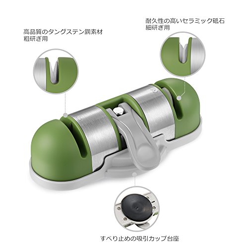 - 【すべり止め吸引カップ付き台】: シャープナーを安全に留めておくために、しっかりとした信頼性のあるパフォーマンスをお届けします。壁、カウンターテーブルの上、キャビネットの扉などにカンタン、スムーズに引っ付けられます。