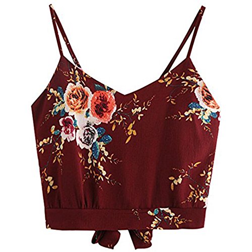 Plojuxi シャツ 上着 レディース ノースリーブ 花柄 ボーダー柄 シフォンシャツ タンクトップ インナーウェア 無袖 ラウンドネック トップス ブラウス おしゃれ ファション かわいい セクシー 無地 カットソー 快適 春 夏 通勤 通学 旅行 日常 快適 女性 (XL, B-ワインレッド)