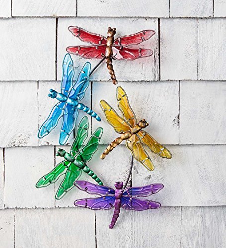 水彩マルチDragonflyガラス壁アート、15 W x 3 D X 22 H