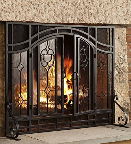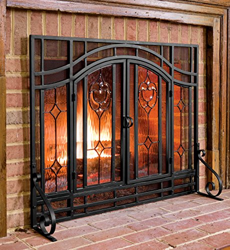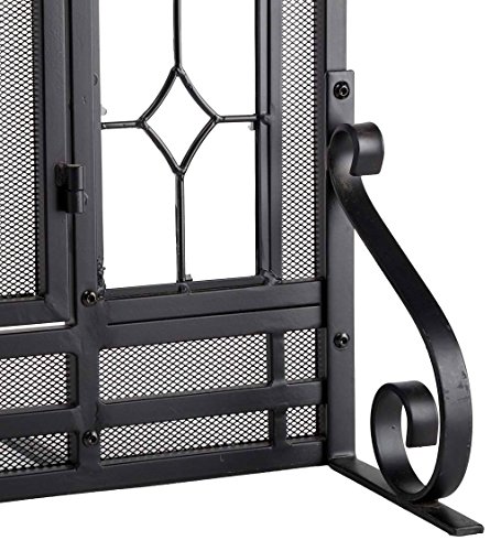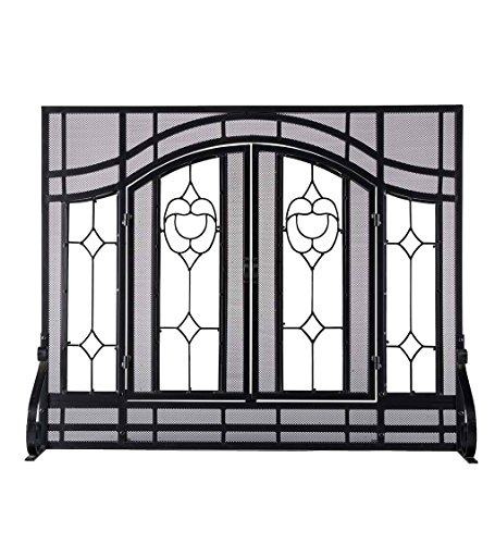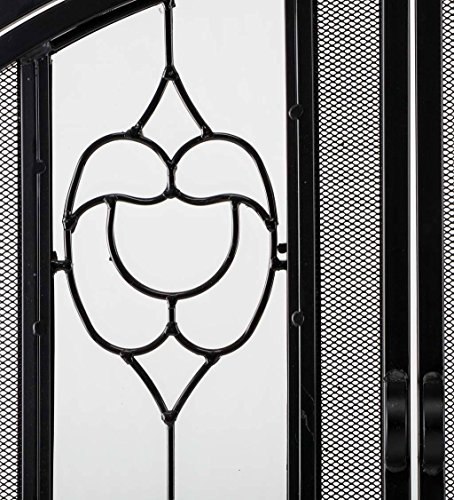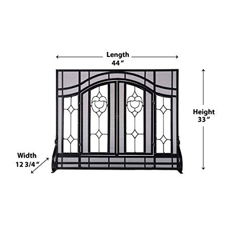 Plow & Hearth two-doorフローラル暖炉Hearth画面ガラスアクセント – パウダーコーティングチューブ状スチール、斜めガラス、メッシュ – ブラック – 44 " W x 33 " H ブラック 10286BK