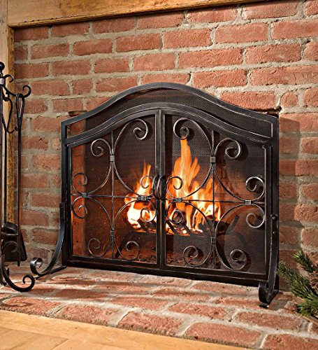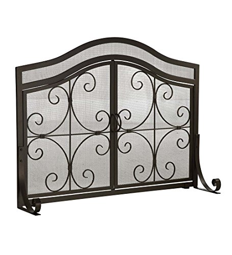 Plow & Hearth Small Crest暖炉スクリーンwithドア ブラック 13912BK