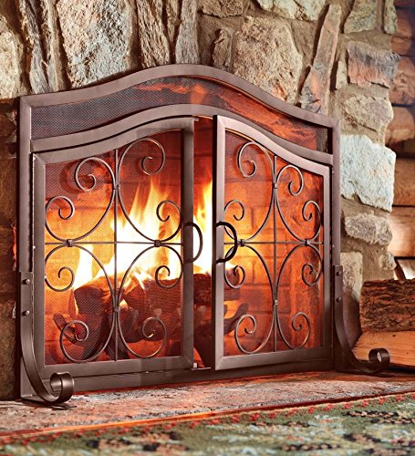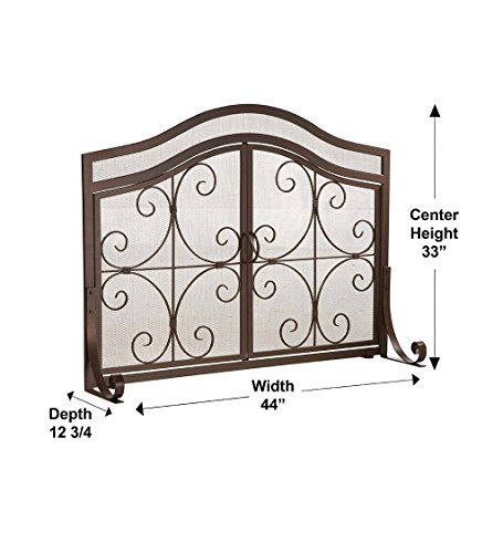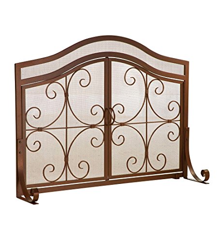 Plow & Hearth Small Crest暖炉スクリーンwithドア ブラウン 13912CO